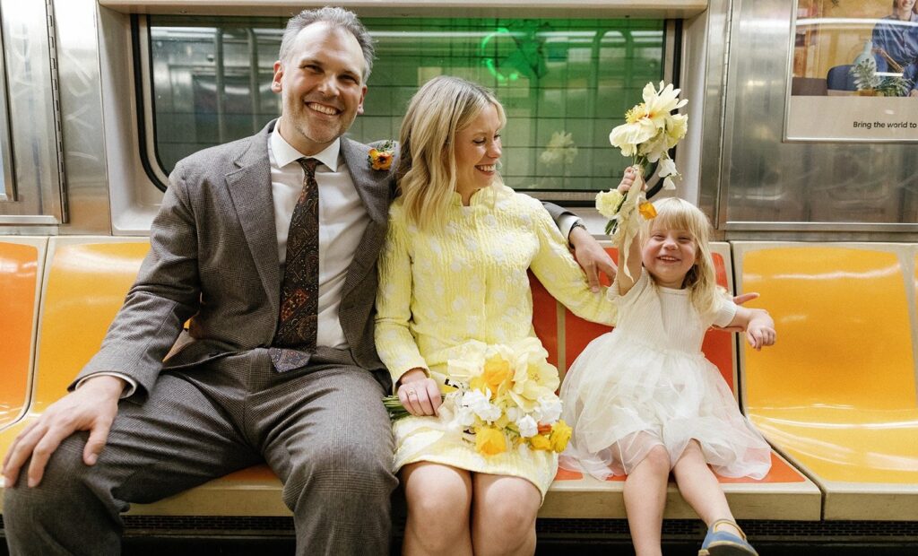 “I met my pal Jessica by means of work. Years in the past, after I mentioned shifting to New York was a giant dream of mine, she mentioned, ‘Come crash on my sofa for 2 months!’ After Marlowe was born, Jessica and her husband Bart had been an enormous help system. They’re associates who really feel like household. After the ceremony, the 4 of us went out for dinner and dancing.”