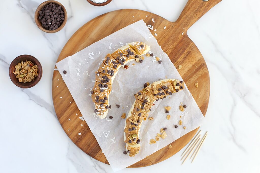 • Unfold 1 to 2 tablespoons of nut butter on high of your banana after which sprinkle with chocolate chips. Add shredded coconut or granola on high for a bit extra taste and crunch.