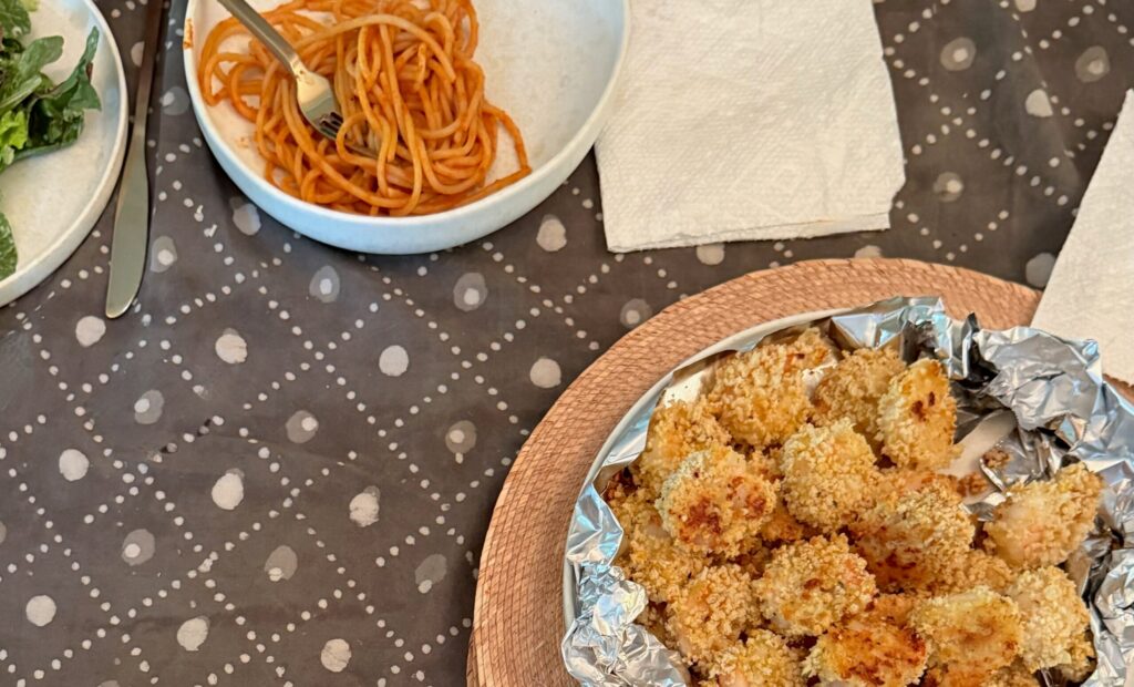 This summer time, one of many meals he whipped up was spaghetti with tomato sauce, a inexperienced salad, and baked shrimp. A couple of readers requested in regards to the shrimp, so I known as Freddie this morning, and he instructed me the steps. Right here goes: