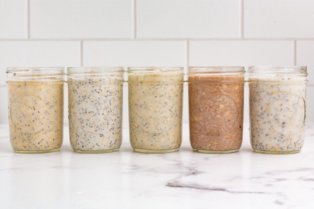In case you’ve by no means made them earlier than, in a single day oats are merely rolled oats combined with milk (or dairy-free milk) and left within the fridge in a single day. By morning, the oats are delicate, creamy, and able to eat—no cooking required!